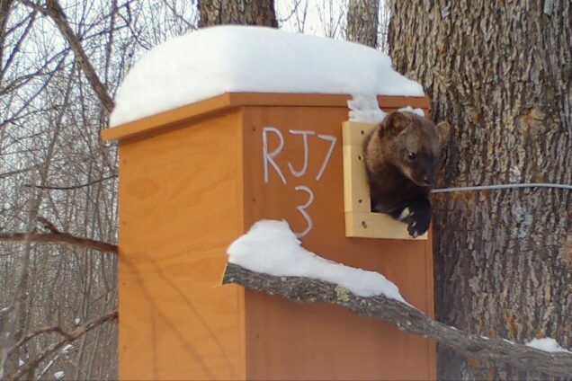Though they are not substitutes for natural denning sites, the boxes offer a rare window into the hidden lives of forest-dwelling animals, including American martens, flying squirrels, red squirrels, birds, and—occasionally—fishers.